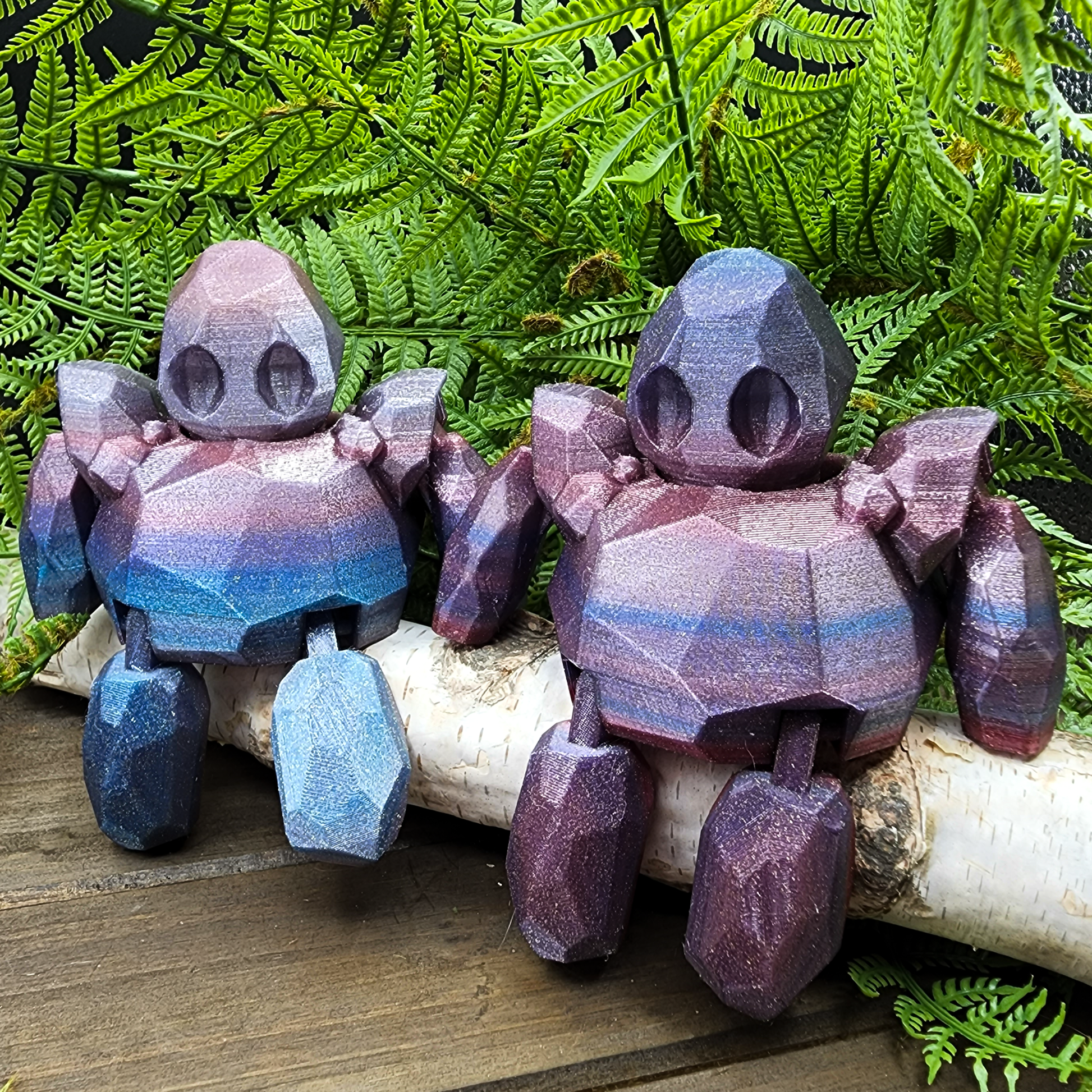 Due to the nature of 3D printing, you'll notice some lines or minor variations which add to the unique character of your golem. If there are any obvious flaws, the piece will not be sold or will be listed as a faulty 3d print at a discounted price. As it is 3D printed in plastic, it is prone to breaking if it is dropped or thrown a large distance. Each golem is printed with PLA that is environmentally kind and plant-based.