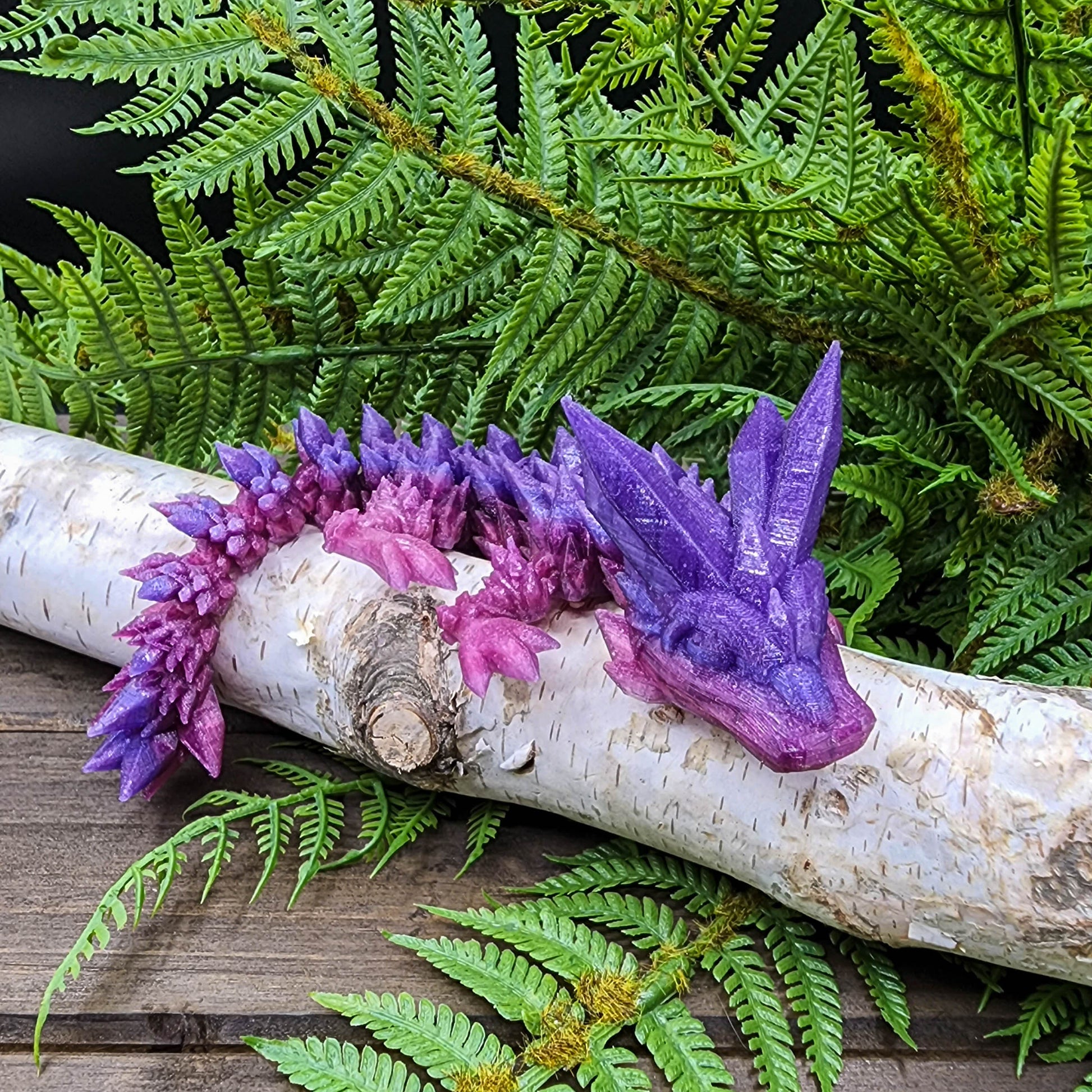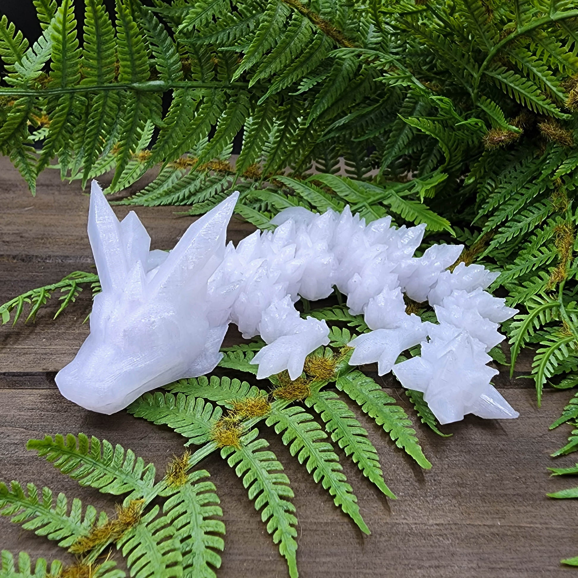 This Flexi Crysal Baby Dragon is 3D Printed and about 7 inches long and makes an amazing fidget toy The entire body articulates as well as the feet. The images displayed for each selection on this listing is an example of the dragon you will be receiving and not the actual print. As this is printed on demand, you will choose the color and the print will be started after the order is placed.