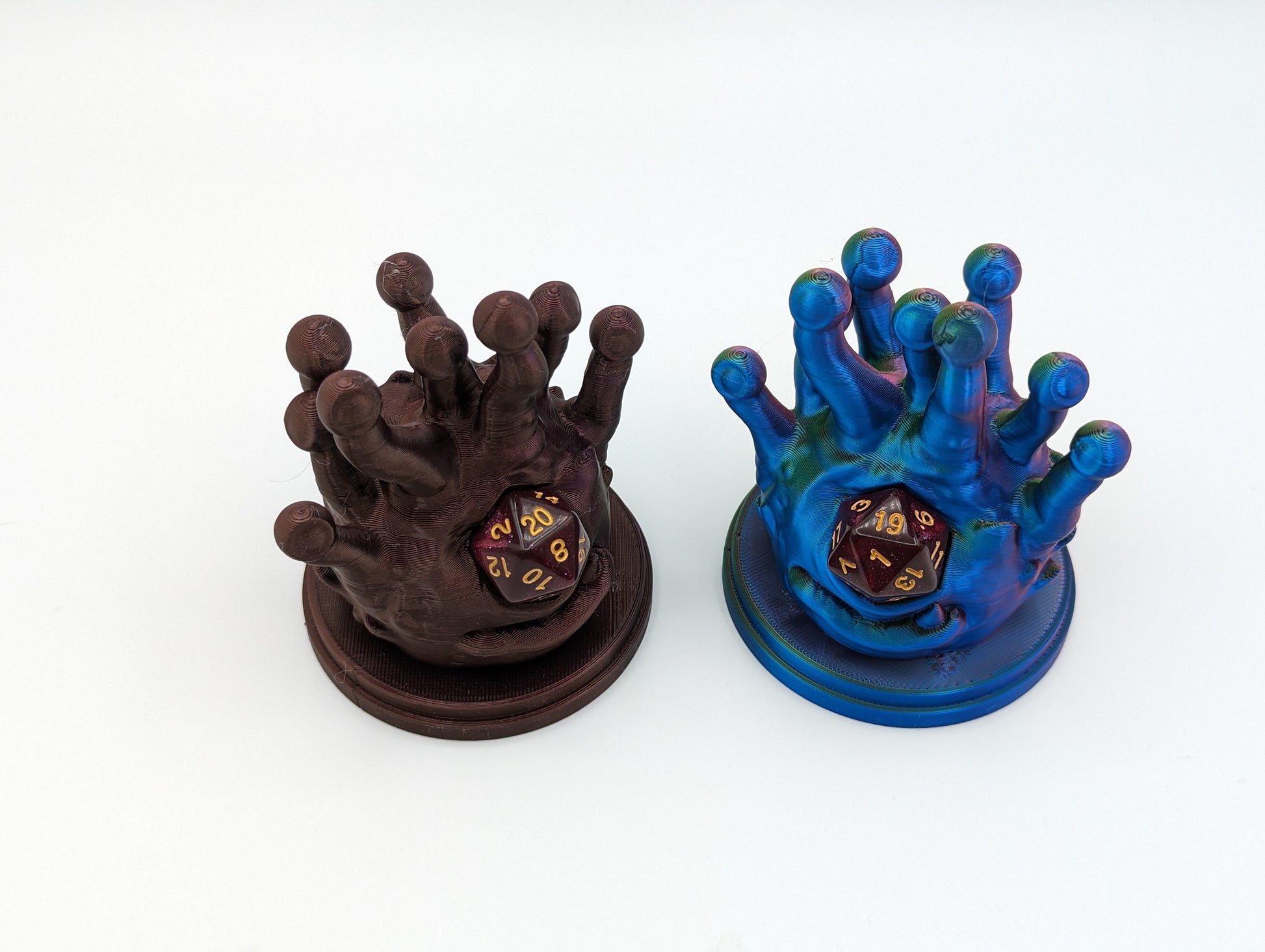Due to the nature of 3D printing, you may notice some lines or minor variations which add to the unique character of your Beholder Dice Guardian. If there are any obvious flaws, the piece will not be sold or will be listed as a faulty 3D print at a discounted price. Each dice guardian is printed with PLA that is environmentally kind and plant-based.