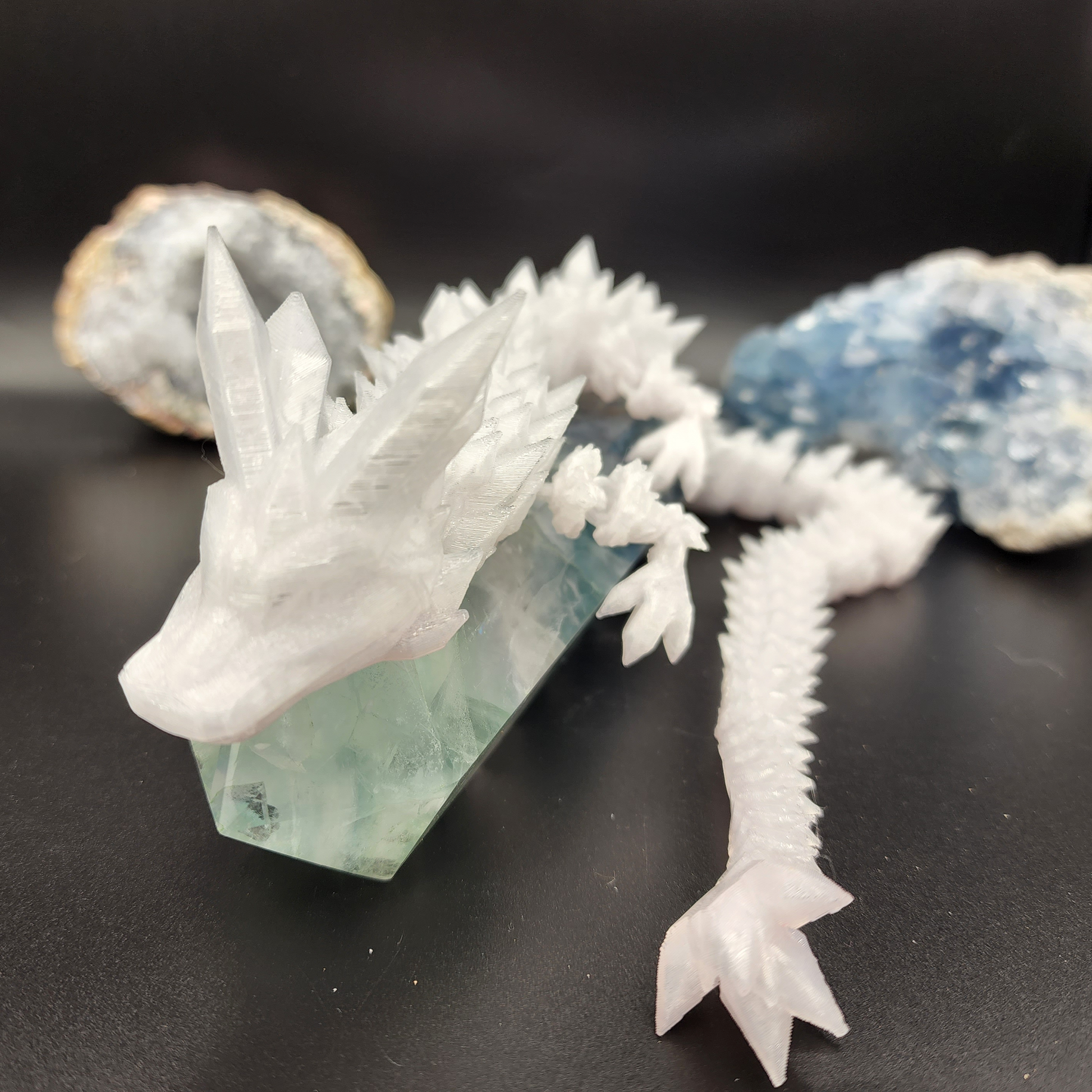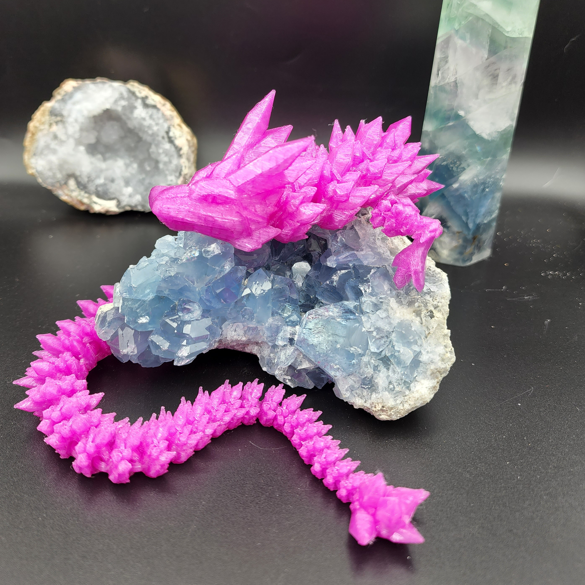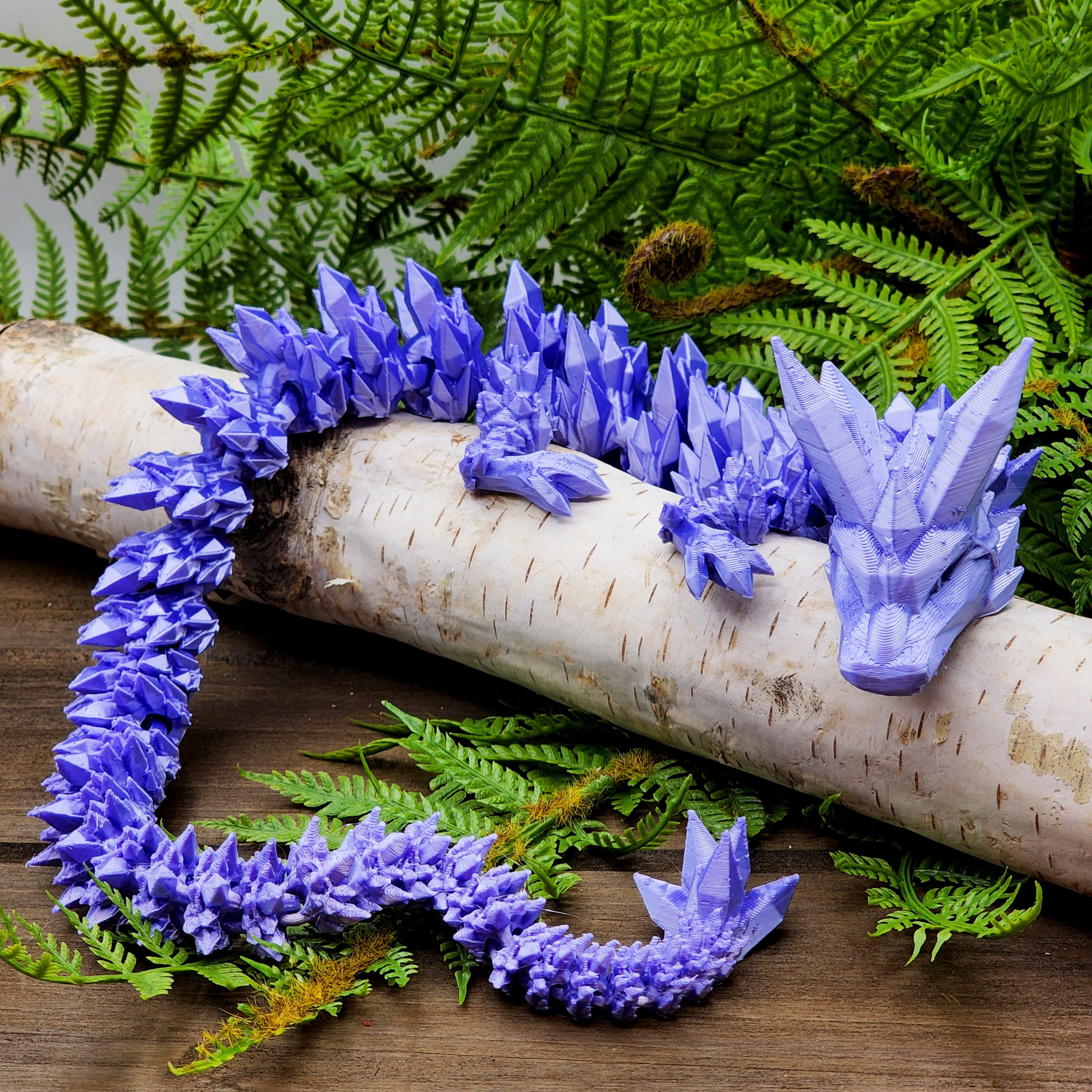 This Flexi Crystal Dragon is 3D Printed and about 18inches long and makes an excellent fidget toy. The entire body articulates as well as the feet. The image displayed for each selection on this listing is an example of the dragon you will be receiving and not the actual print. As this is printed on demand, you will choose the color and the print will be started after the order is placed.