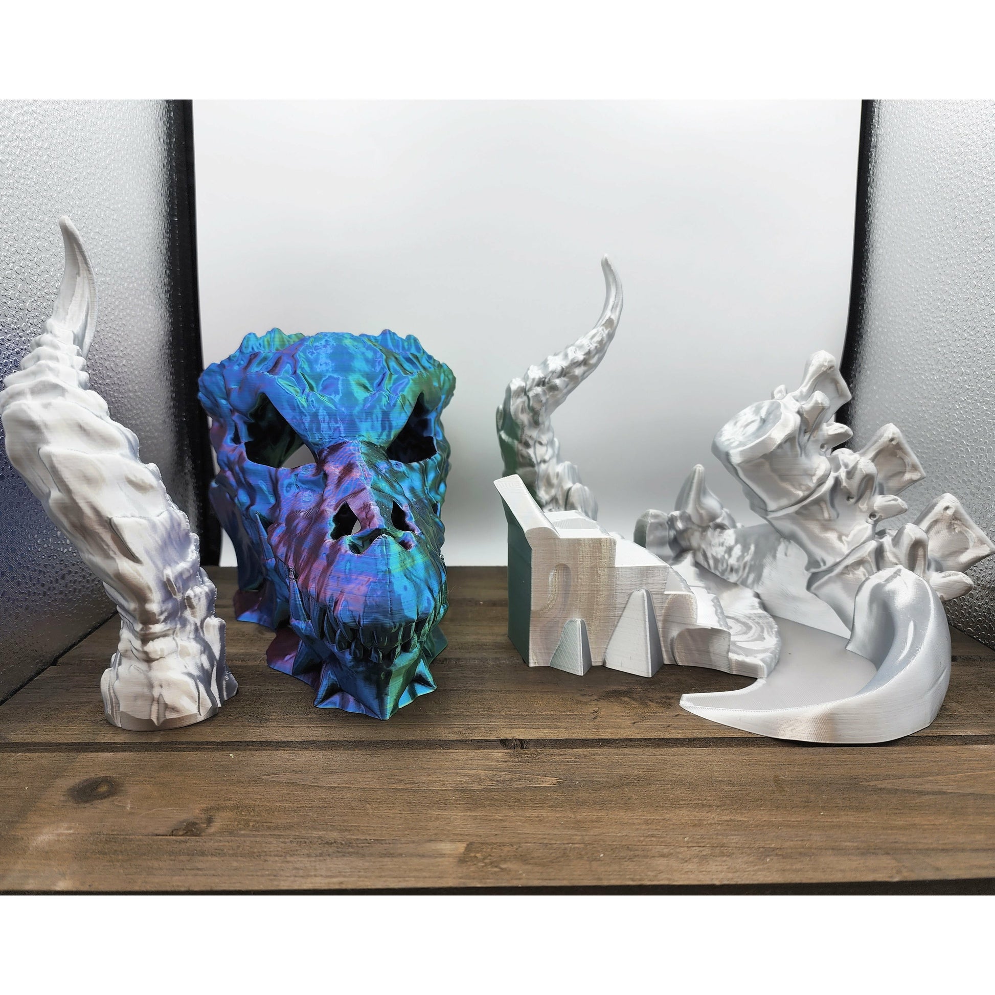 Due to the nature of 3D printing, you'll notice some lines or minor variations which add to the unique character of your Dragon Dice Tower. If there are any obvious flaws, the piece will not be sold or will be listed as a faulty 3d print at a discounted price. Each dice tower is printed with PLA that is environmentally kind and plant-based.