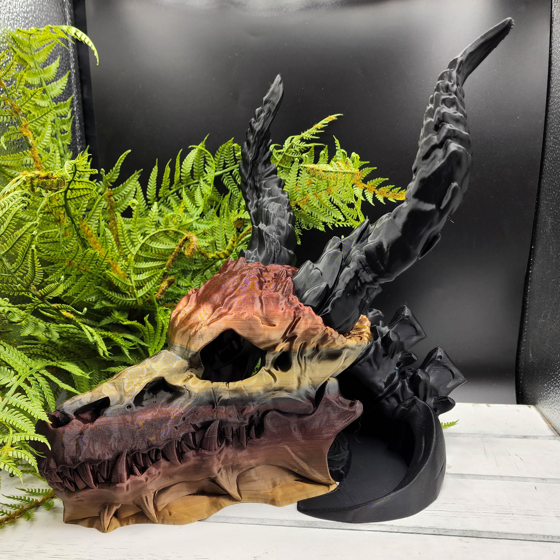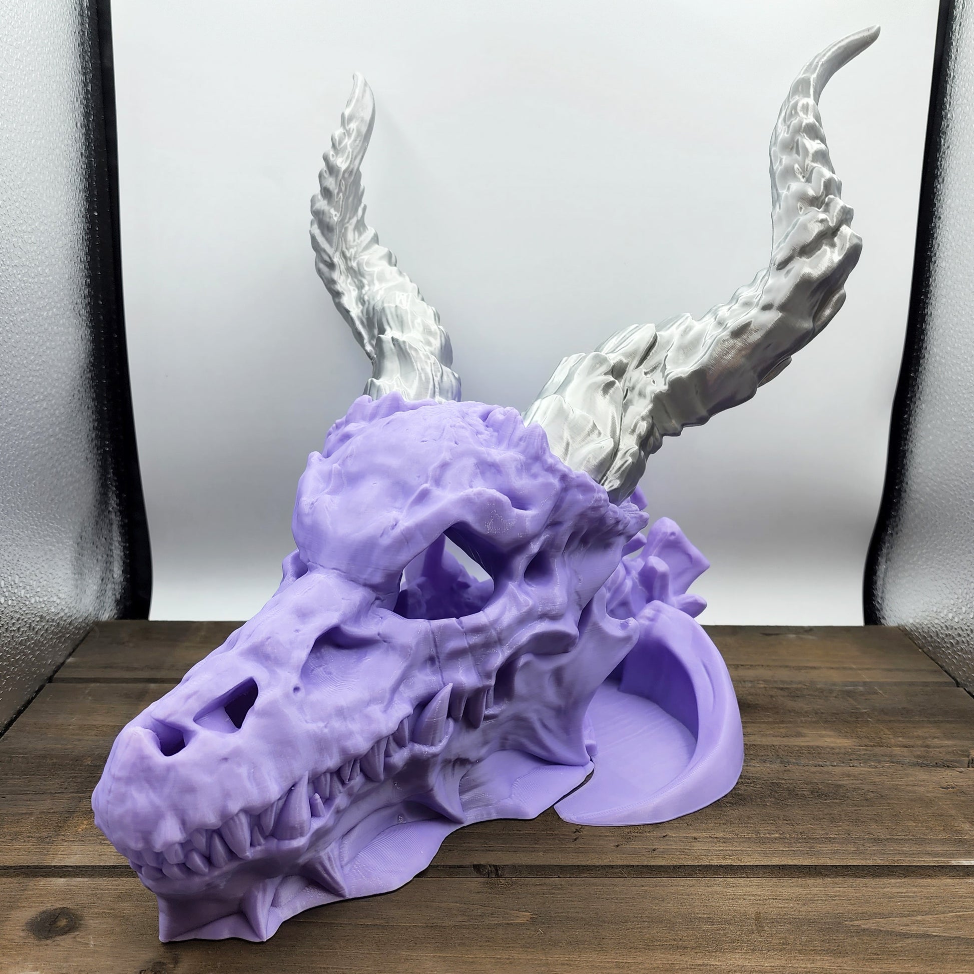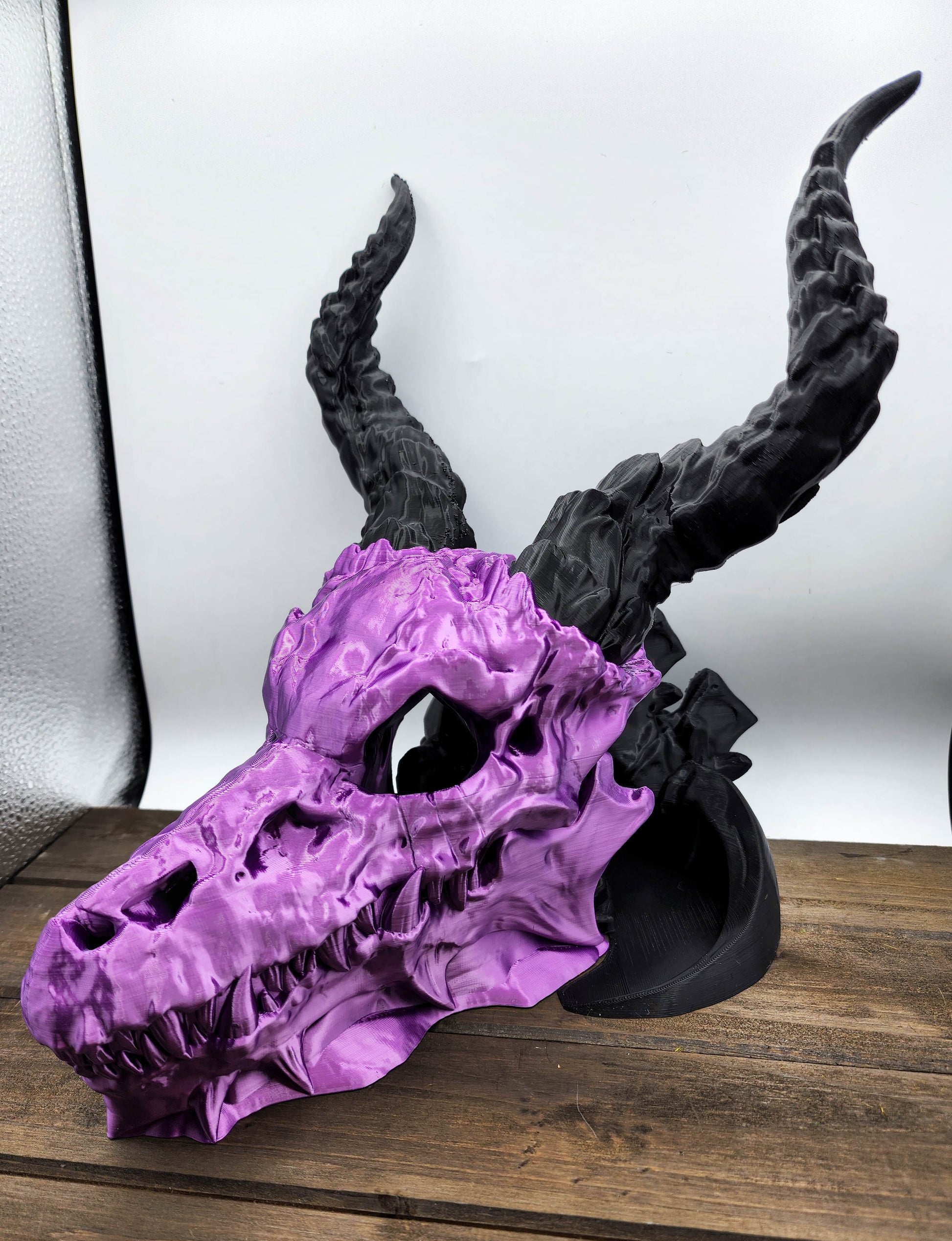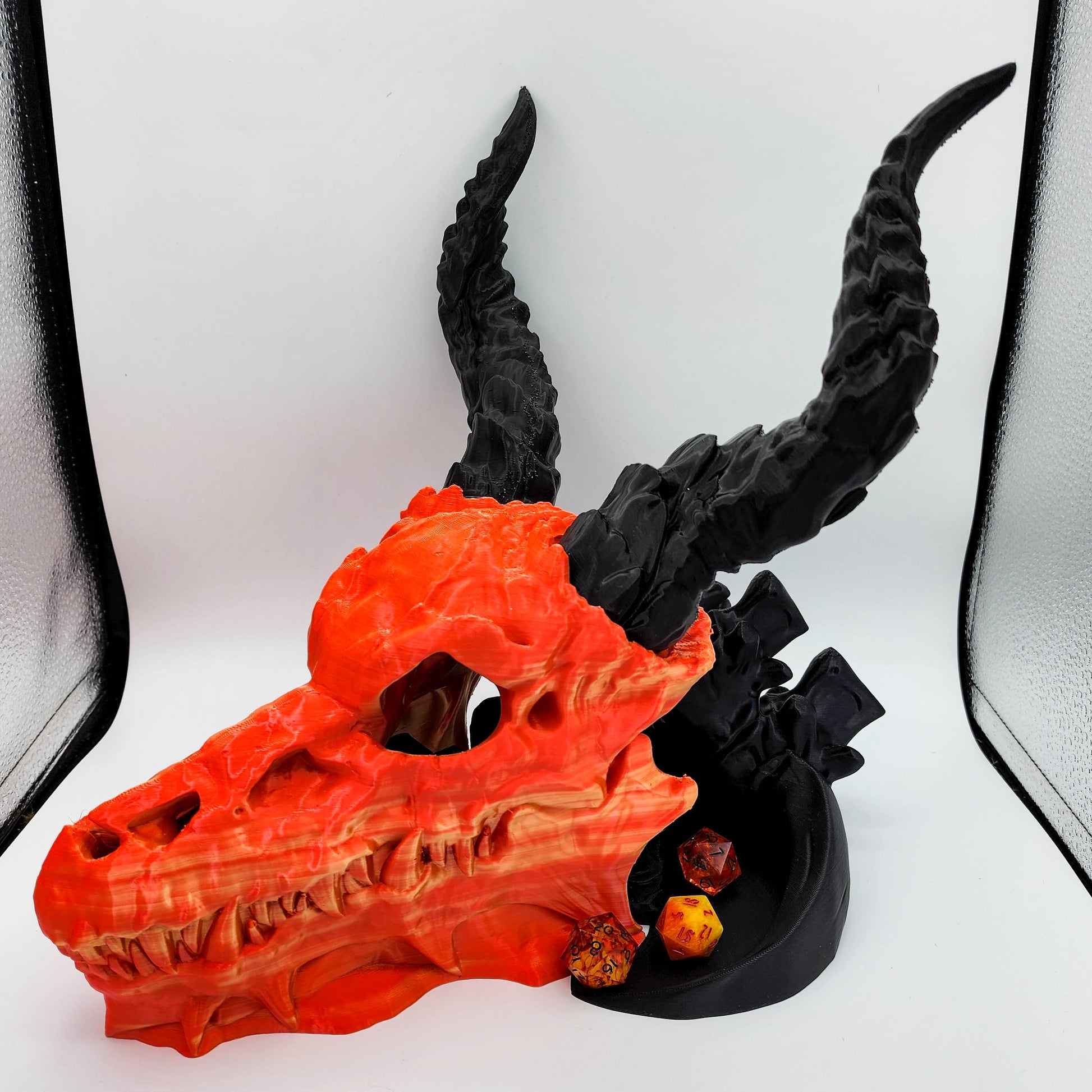 This Dice Tower will make a huge impact at your next DnD session! This tabletop dice roller is fully paintable and available in a large variety of stunning colors. The images displayed are examples of the Dragon Dice Tower, each item will have slight variation due to the nature of 3D printing.