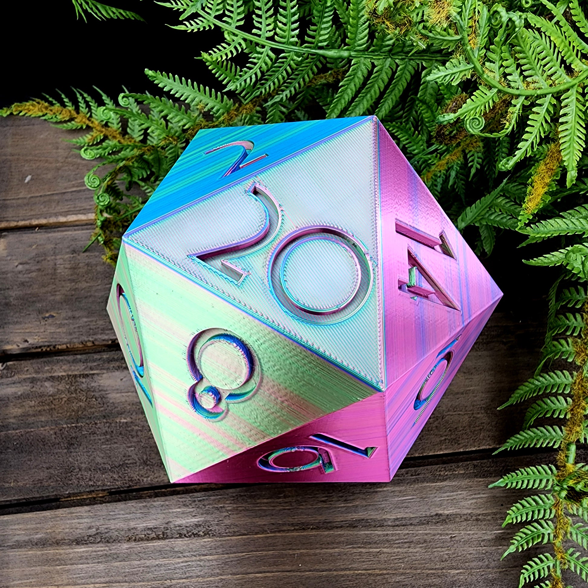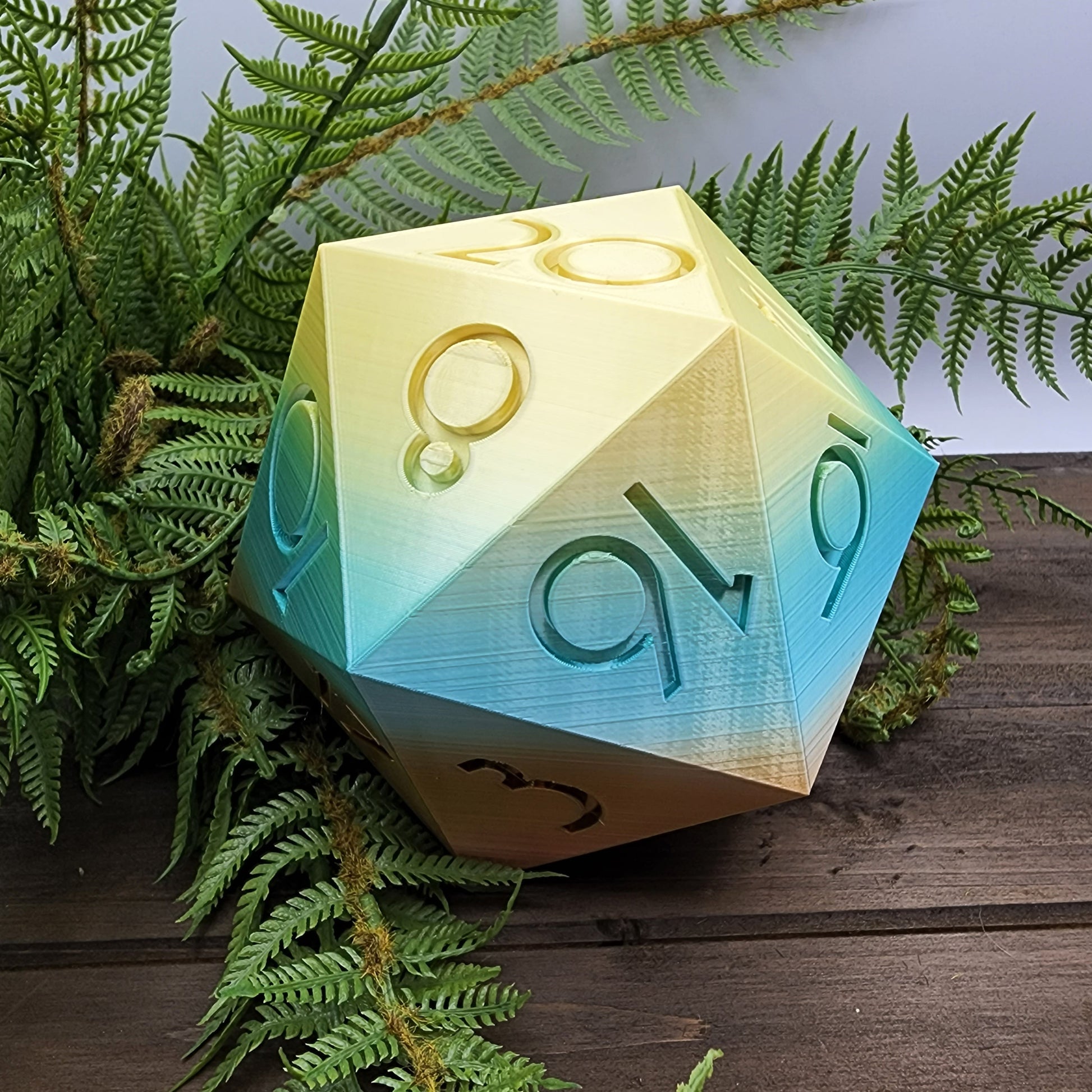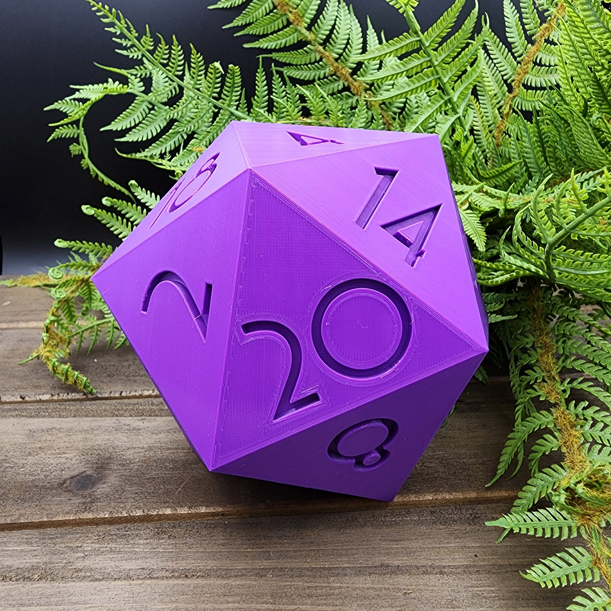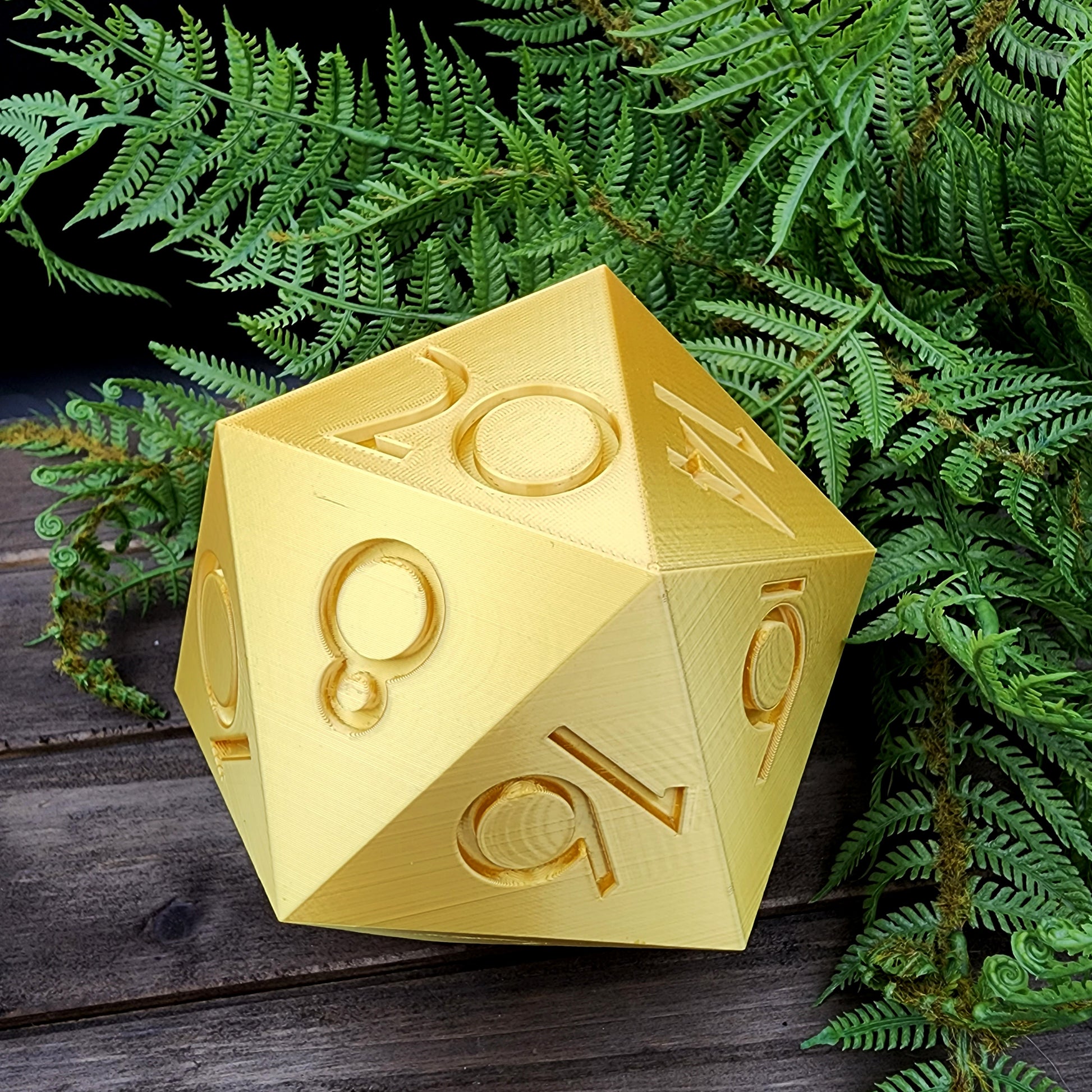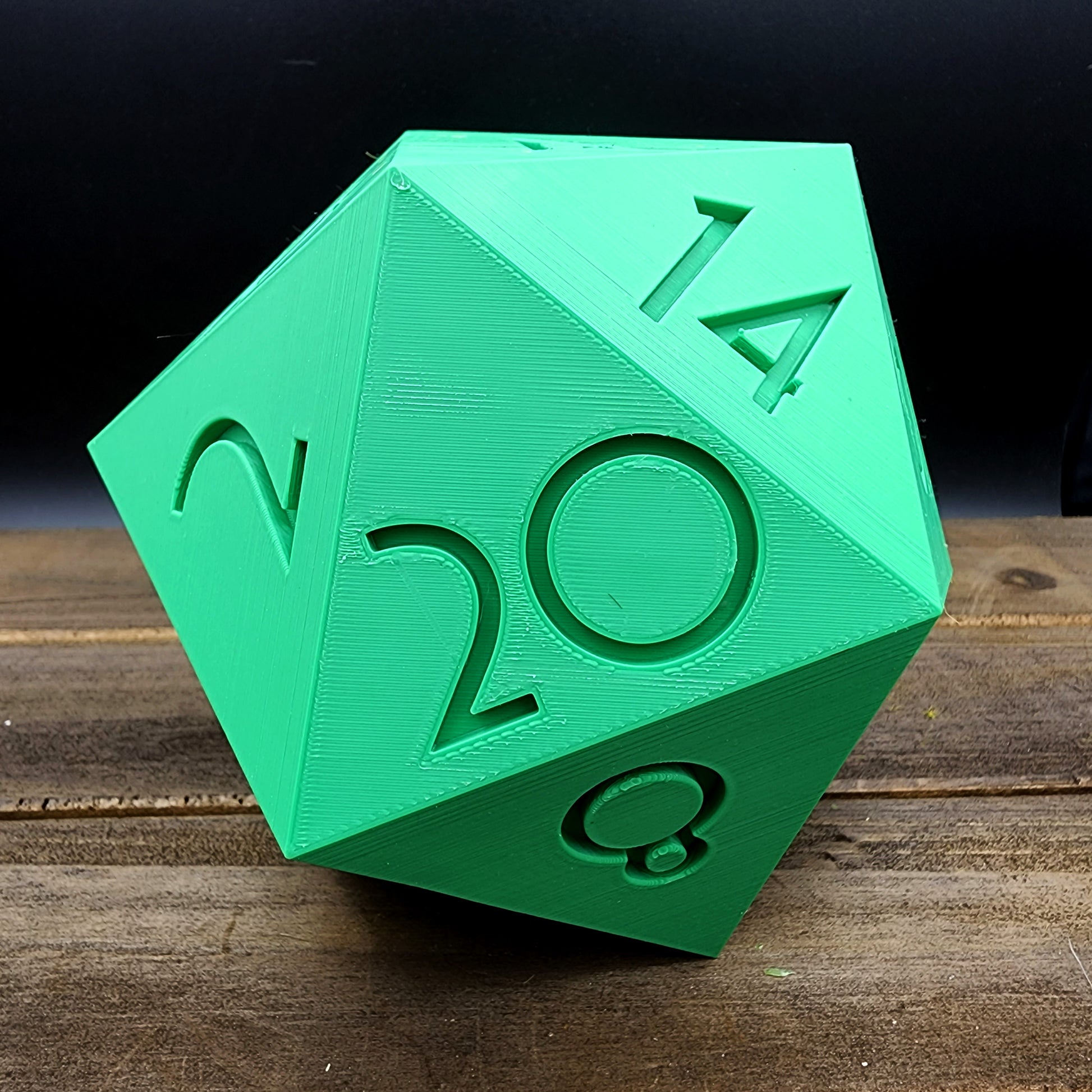Due to the nature of 3D printing, you'll notice some lines or minor variations which add to the unique character of your Giga D20. If there are any obvious flaws, the piece will not be sold or will be listed as a faulty 3d print at a discounted price. Each dice is printed with PLA that is environmentally kind and plant-based.