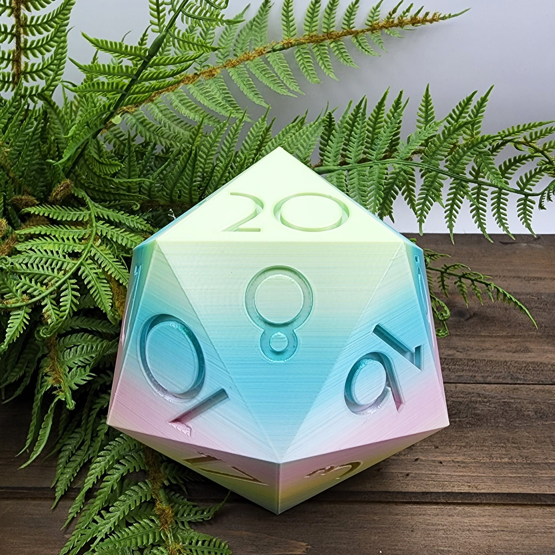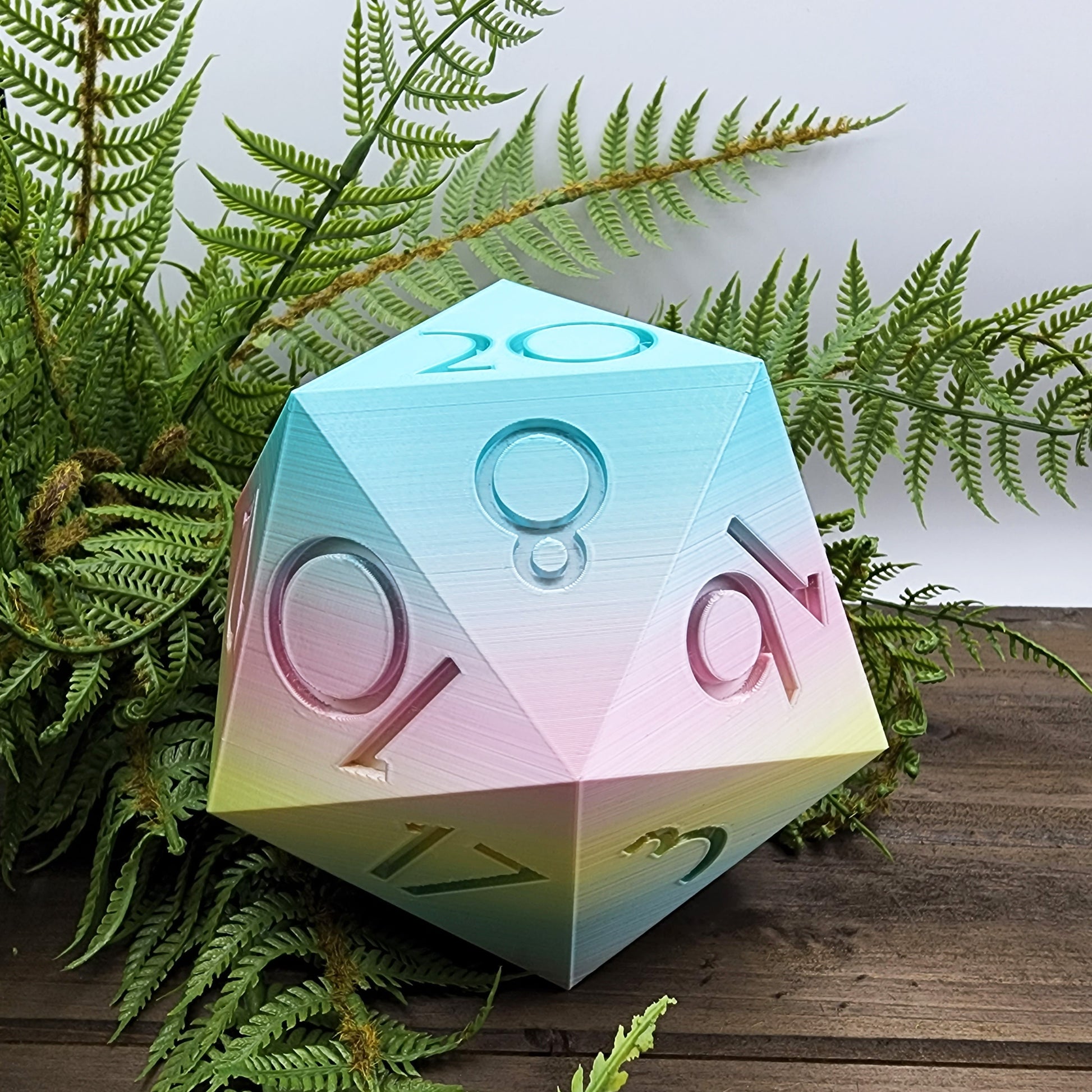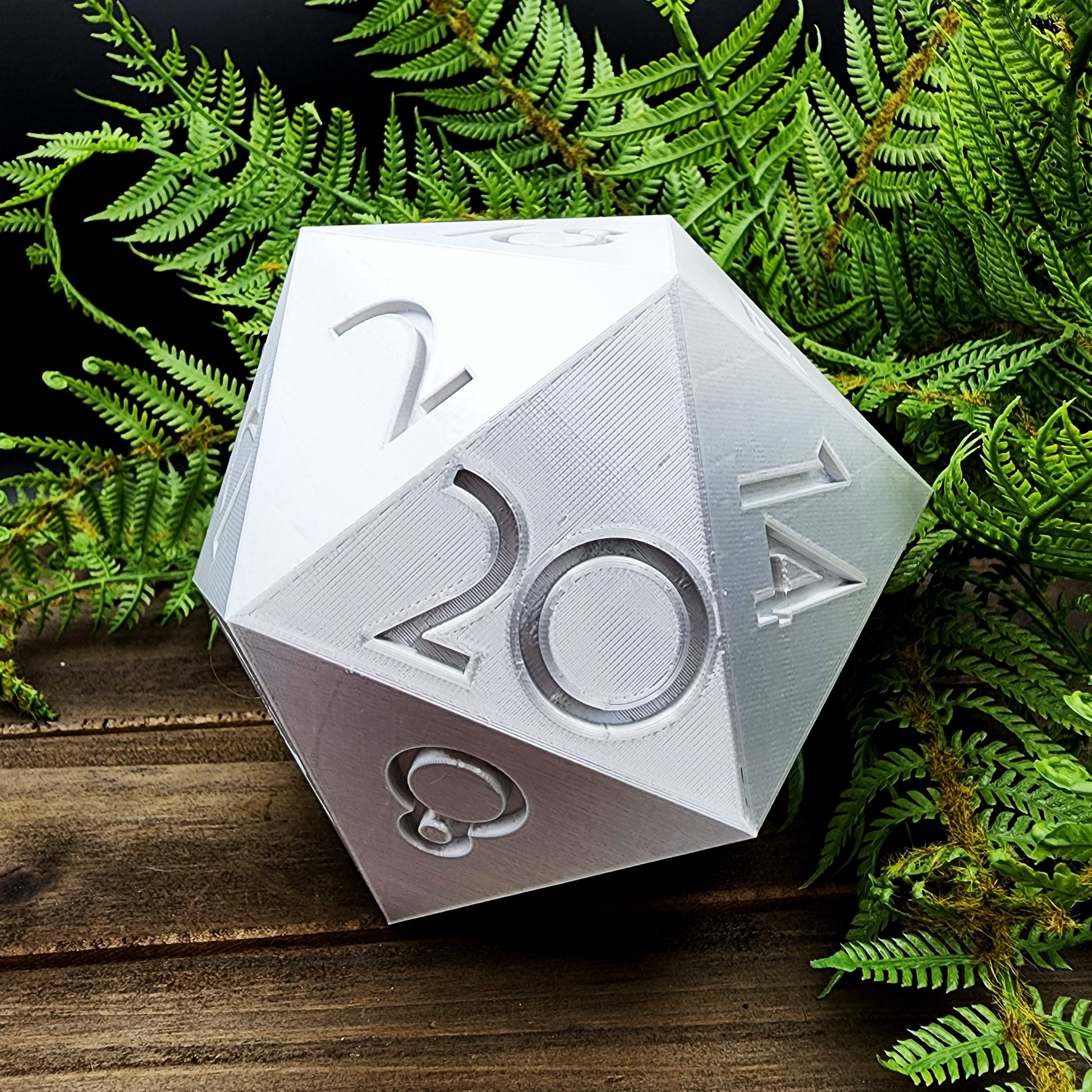This oversized D20 will make a huge impact at your next DnD session! This tabletop centerpiece is fully paintable and available in a large variety of stunning colors. The image displayed is an example of the D20 but is not the actual item you will receive. As this is printed on demand, you will choose the color(s) and the print will be started after the order is received.