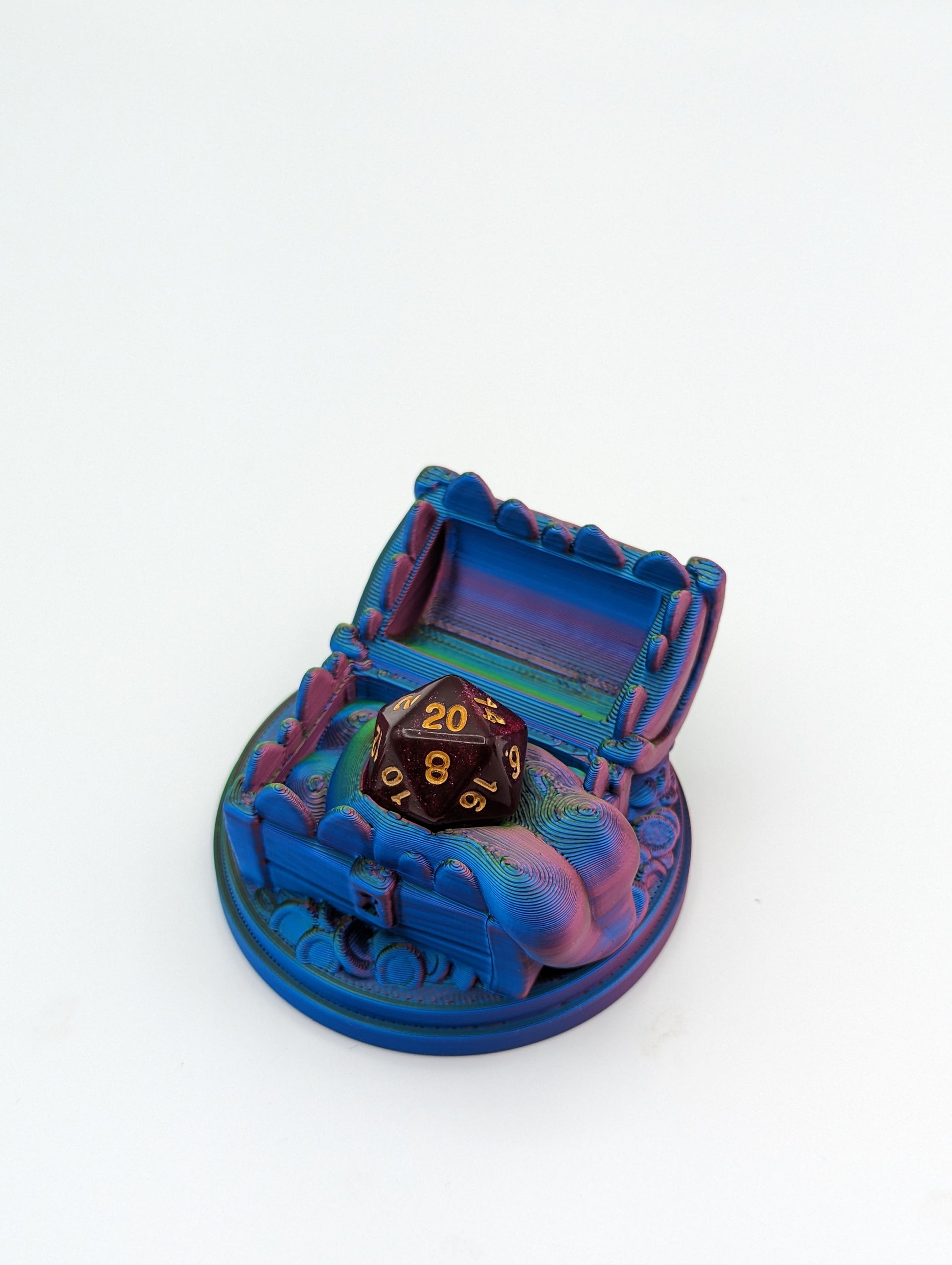 Due to the nature of 3D printing, you may notice some lines or minor variations which add to the unique character of your Mimic Dice Guardian. If there are any obvious flaws, the piece will not be sold or will be listed as a faulty 3D print at a discounted price. Each dice guardian is printed with PLA that is environmentally kind and plant-based.