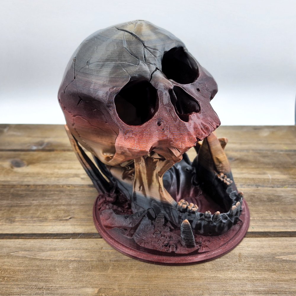 Due to the nature of 3D printing, you'll notice some lines or minor variations which add to the unique character of your Skull Dice Tower. If there are any obvious flaws, the piece will not be sold or will be listed as a faulty 3D print at a discounted price. Each dice tower is printed with PLA that is environmentally kind and plant-based.
