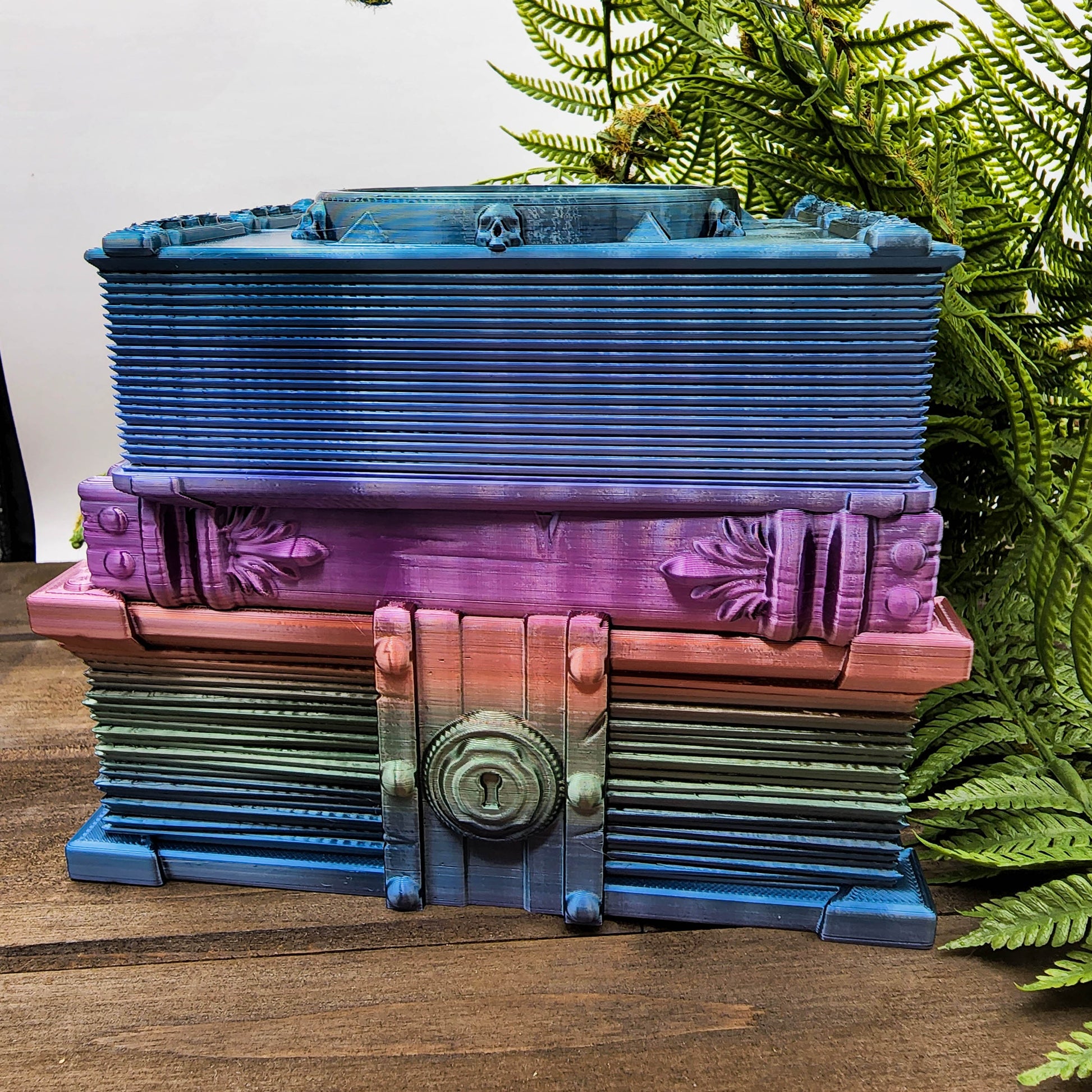 Due to the nature of 3D printing, you may notice some lines or minor variations which add to the unique character of your Spell Books Dice Tower. If there are any obvious flaws, the piece will not be sold or will be listed as a faulty 3d print at a discounted price. Each dice tower is printed with PLA that is environmentally kind and plant-based.